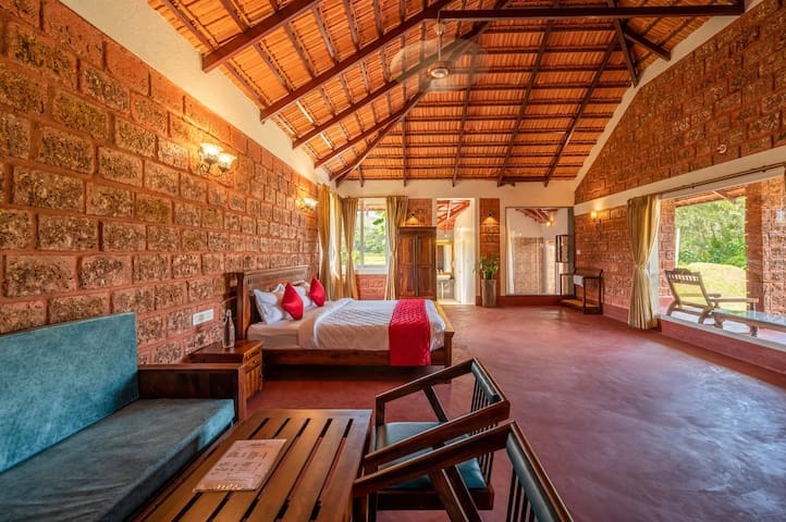 コーヒー農園の丘の上にある居心地の良い木造コテージに滞在しましょう。星空の下で焚き火や音楽を楽しめるプライベートガーデンがあります。 Ra 250で、本場のマラナド料理を堪能しましょう。軽食や飲み物は追加料金でご利用いただけます。 ジープに乗ってトレッキングをしたり、コーヒー、コショウ、アレッカの木立をのんびり歩いたりして自然を探索しましょう。 コテージには快適なベッド、専用バルコニーがあり、静かな隠れ家としてご利用いただけます。Swiggy/Zomatoはご利用いただけません。AirtelとJioが最も効果的です。