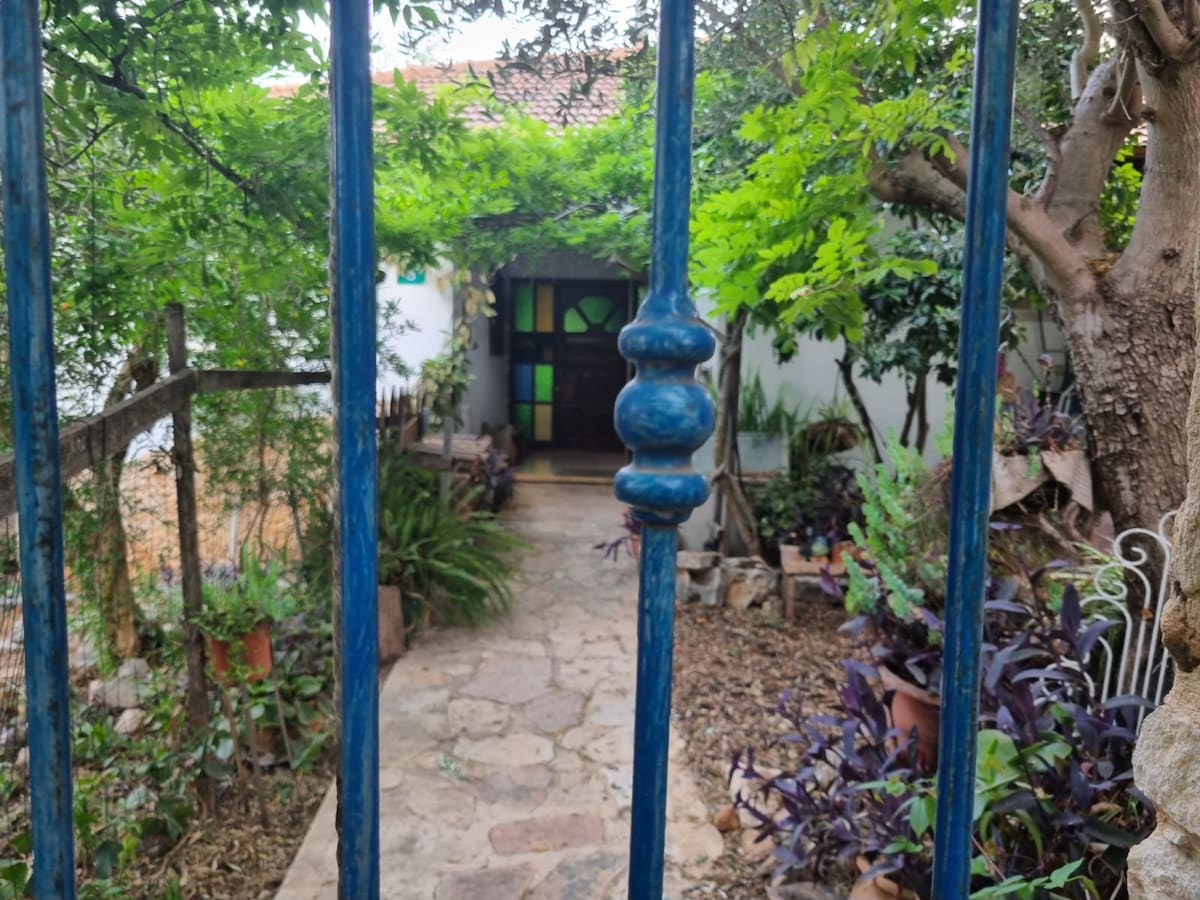 果樹やハーブがいっぱいの魅惑的な大きな庭園です。 私の両親の家で、素晴らしい作品とアトリエを喜んで見せてくれるアーティストです。 自家用車または公共交通機関に最適なロケーションで、パルデスハナ駅から徒歩15分(テルアビブから40分)。森を抜けて市内中心部までは10分の素敵な散歩道。周辺の美しい自然や史跡(カイザリア遺跡とアクエデュクトビーチ、アミカムの丘と小川、カルメル山)まで車で15分 周辺でできる楽しいことがたくさんあります。