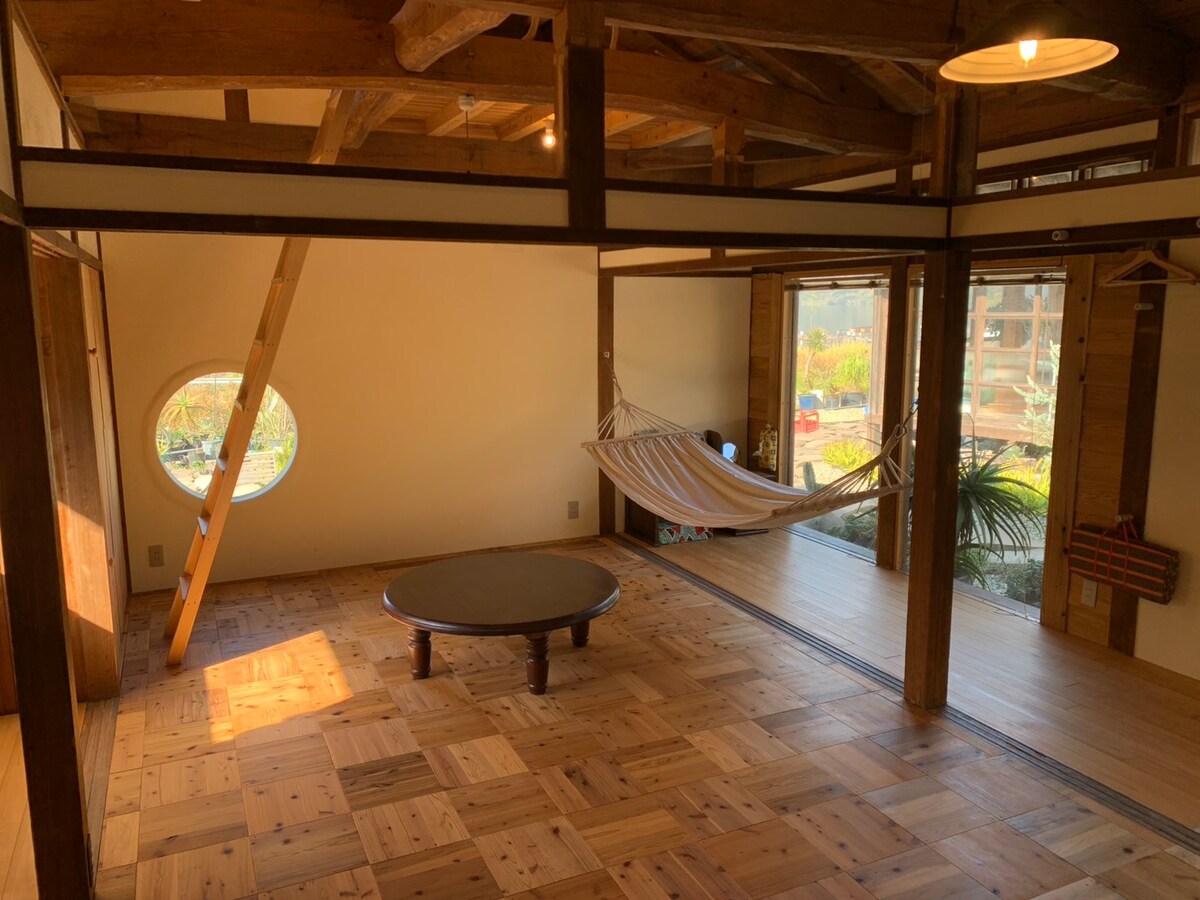This is a newly renovated house of 50 year old Japanese style house located on a private property surrounded with beautiful nature, all w/in 10 minutes drive to all amenities as train station, local market, small shrine (be-loved by the locals), beach, hot spring "onsen", and many more! Inside it is traditional Japanese style " Tatami " mats sleeping area with paper sliding " Shouji " doors. We can provide you "Buddha Bowl" breakfast according to your preferences.