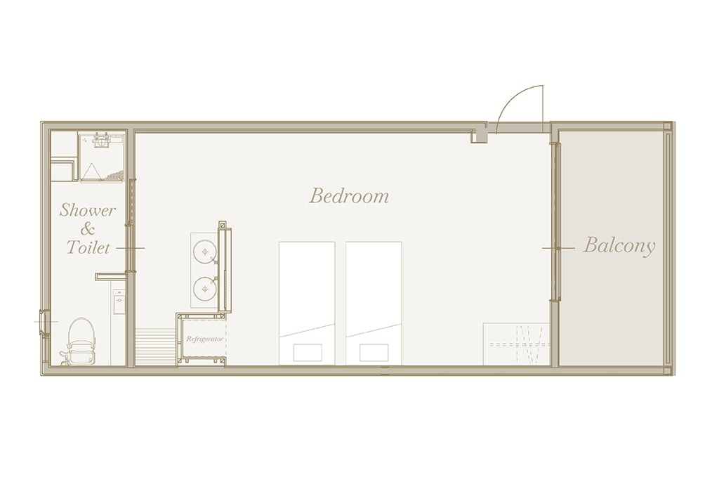 お二人でのご滞在に最適な、落ち着いた雰囲気のシンプルなお部屋です。 シングルベッドを2台ご用意しており、ご友人同士やカップル、ご家族など、さまざまなご利用におすすめです。 このお部屋には、海を望むバルコニーが付いています。 朝や夕方には、海風とともに変わる空の色を感じながら、ゆったりとした島時間をお楽しみいただけます。 お部屋には、 ・電子レンジ ・冷蔵庫 ・電気ケトル ・空気清浄機 ・掃除機(セルフ清掃用) 買ってきたお食事の温めや、お湯のご利用が可能です。 なお、コンロなどの調理設備はございませんので、調理はできません。 また、浴室・トイレは男女別の共用設備となります。 清潔で安心してご利用いただけるよう、定期的に清掃を行っております。 観光・お仕事・帰省など、さまざまなシーンで、 海を身近に感じる特別な滞在をお楽しみください。