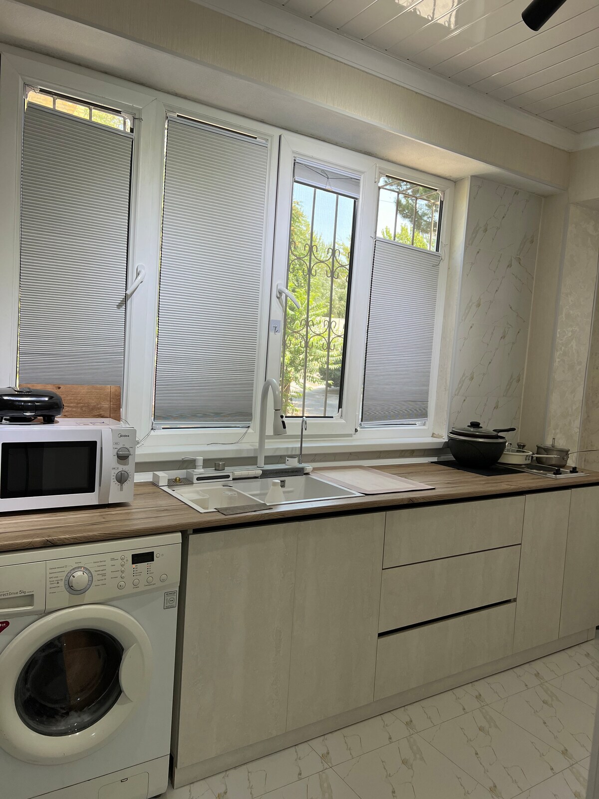 Welcome to your peaceful Khujand retreat! This newly refurnished 3-room ground-floor apartment is bright, spacious, designed for comfort. Located in a quiet, green area just 3 minutes from a supermarket. Accommodates up to 6 guests: 1 king bed, 2 twin beds, and a sofa bed. Enjoy a fully equipped kitchen, a full bathroom plus a separate toilet, free on-site parking, and high-speed Wi-Fi, AC. Ideal for families or groups seeking both relaxation and convenience in the heart of Khujand.