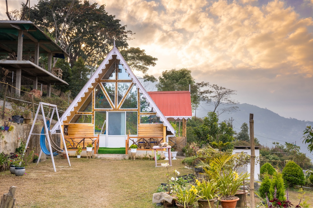 緑豊かな山々と高く雄大な木々に囲まれた、ダージリンの静かなレボン茶園にある居心地の良いコテージを想像してみてください。屋内では、パチパチと音を立てる暖炉が部屋に温かみと魅力を加え、部屋に穏やかな明かりを放っています。外に出ると、手入れの行き届いた芝生には鮮やかな植物が飾られており、平和で静けさの絵のような雰囲気が作られています。こののどかなコテージは、自然の抱擁に完璧に逃れることができます。 ご予約前にご相談ください ❤️