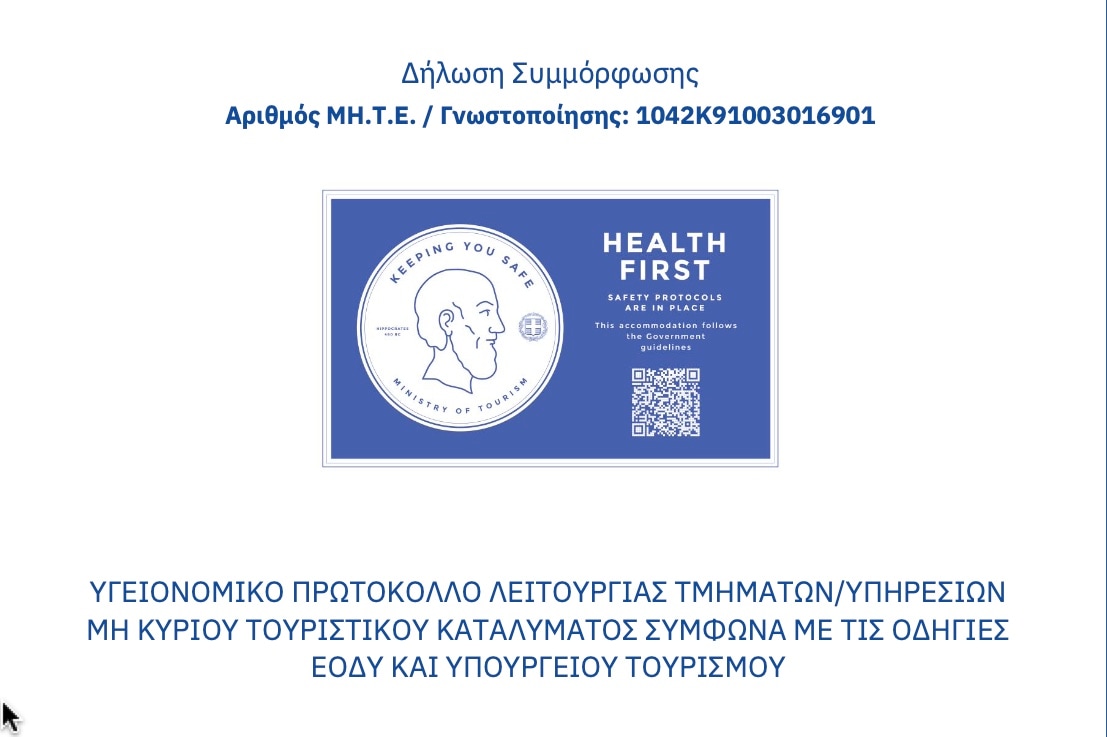 この新しく改装された豪華なスタジオは、素晴らしい海と夕日のパノラマビューを望むことができ、静かな地区の小さな丘の上にあり、通りに無料の駐車場があります。旧市街までは徒歩12分です。 約27平方メートルの広々としたお部屋(寝室 - キッチン)とバスルームがあり、設備が完備されています。 隣接する高級ホテルMACARIS SUITES&SPAのすべてのスペースを使用して、食事や飲み物を注文することができます。