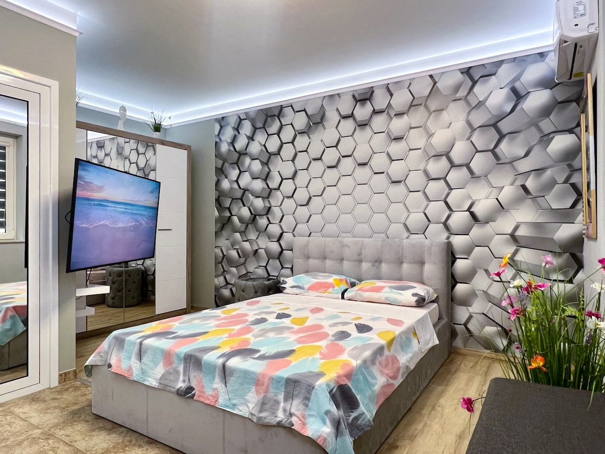 ヴァルナの主要な歩行者専用エリアからわずか1分の新しい2ベッドルームのアパート!スタイリッシュなインテリア、設備の整ったキッチン、プライベート屋内ジャグジーをお楽しみください。1日外出した後にリラックスするのに最適です。カップル、ご家族、出張者に最適です。高速Wi-Fi、全室にエアコン、街の中心部での素晴らしい滞在のためのすべての快適さ。 アパートは1階にあります 無料駐車場2台分 🅿️ 🚗 🚙