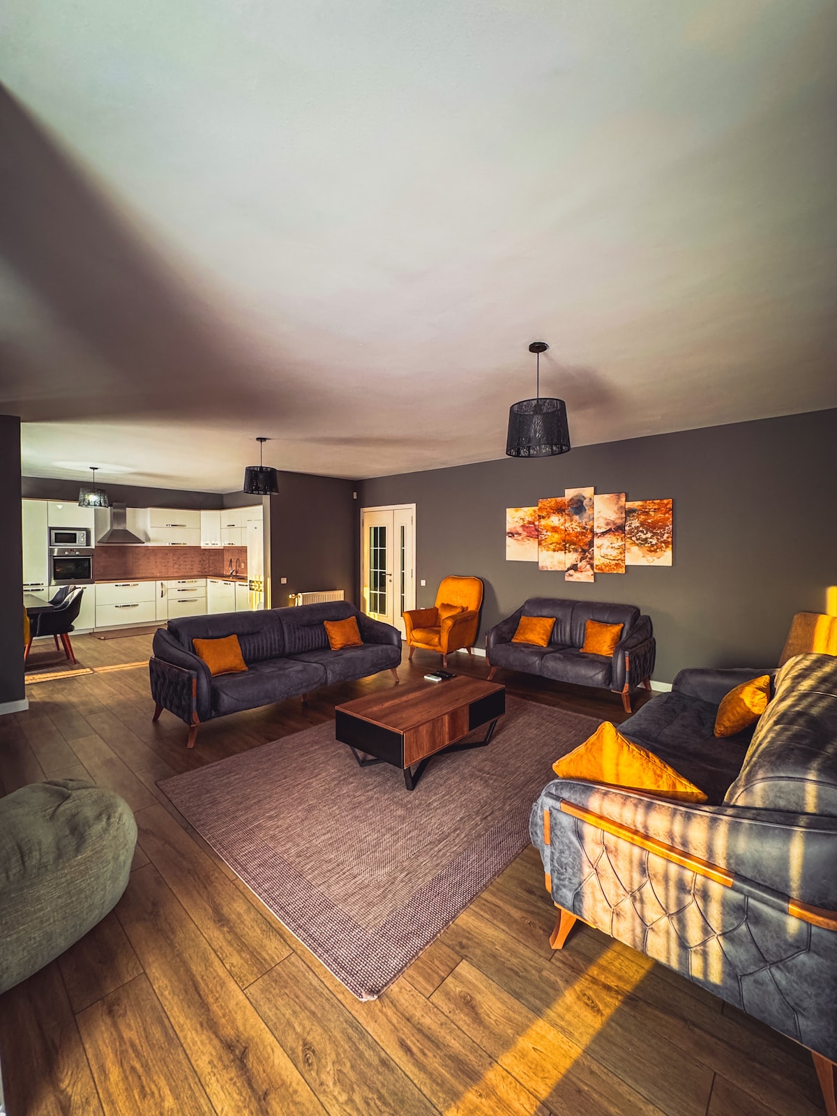 What should the home of people whose main passion is travel look like? The hosts, who travel often, especially appreciate coziness and comfort. For them, travel is not a vacation, but rather new impressions and a change of scenery, an opportunity to get out of their comfort zone and return to it. With the most beautiful view in the center of Prishtina we continued the project's strong combination of colors and design styles is a huge number of kinesthetic elements we instilled everywhere.