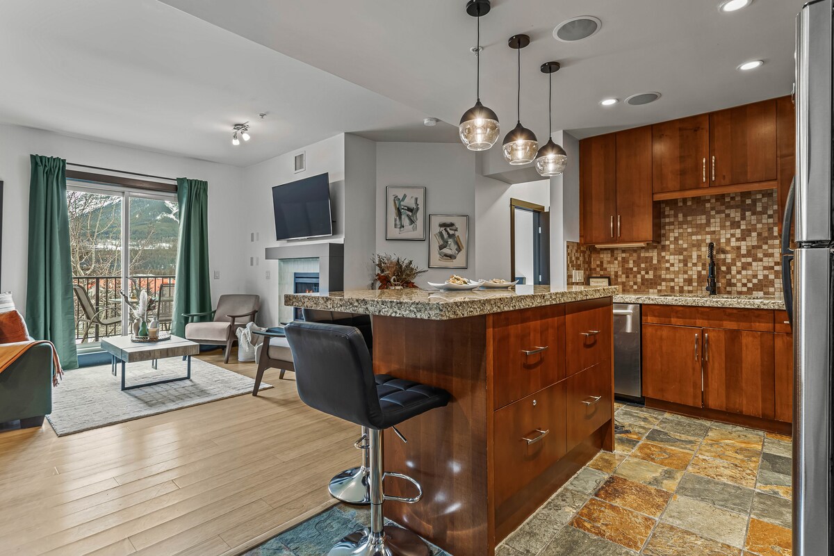 バルコニー、ベッドルーム、リビングルームからゴージャスなロッキー山脈を見渡すこの新しく改装された1ベッドルームのコンドミニアムは、期待するすべてのアメニティを提供しています。 ベッドルームには快適なキングサイズベッドが備わっています。 リビングルームには、追加のゲストを収容できる高品質のソファベッドがあります。 暖炉が居心地の良い雰囲気を醸し出します。 無料Wi-FiとAmazonプライムビデオ&Shaw TVを備えたスマートテレビで、レジャーをお楽しみいただけます。 設備が整ったキッチンとシャワー付きの深い浴槽で、我が家のような気分になれます!