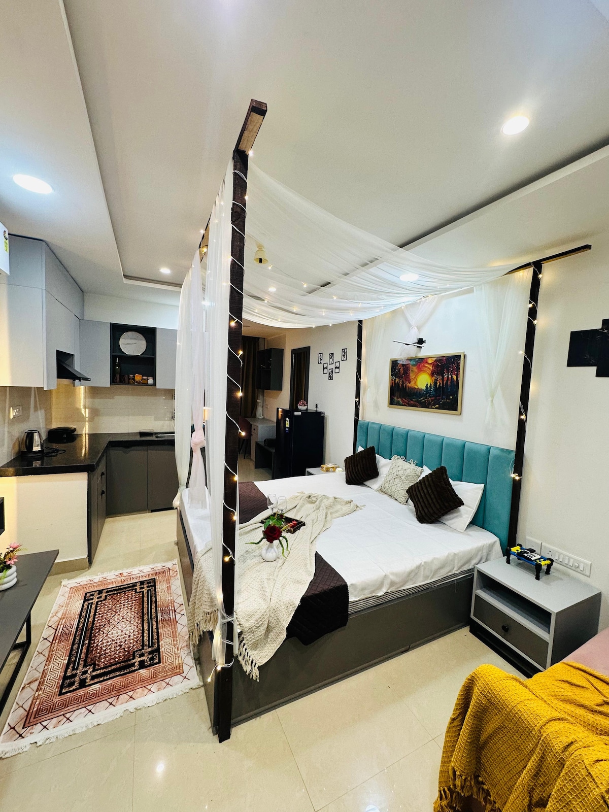 快適さ、スタイル、プライバシーを重視してデザインされた、ジャイプールのプレミアムラグジュアリースタジオへようこそ。快適なキングサイズのベッド、暖かい照明、スマートテレビ、高速Wi-Fi、仕事スペース、設備の整ったキッチンを備えており、カップル、ビジネス旅行者、短期滞在に最適です。セルフチェックインで、安全で静かな環境をお楽しみください。WTPと空港の近くにあり、カフェや市場へ簡単にアクセスできます。今すぐ予約して、快適な滞在をご堪能ください。
