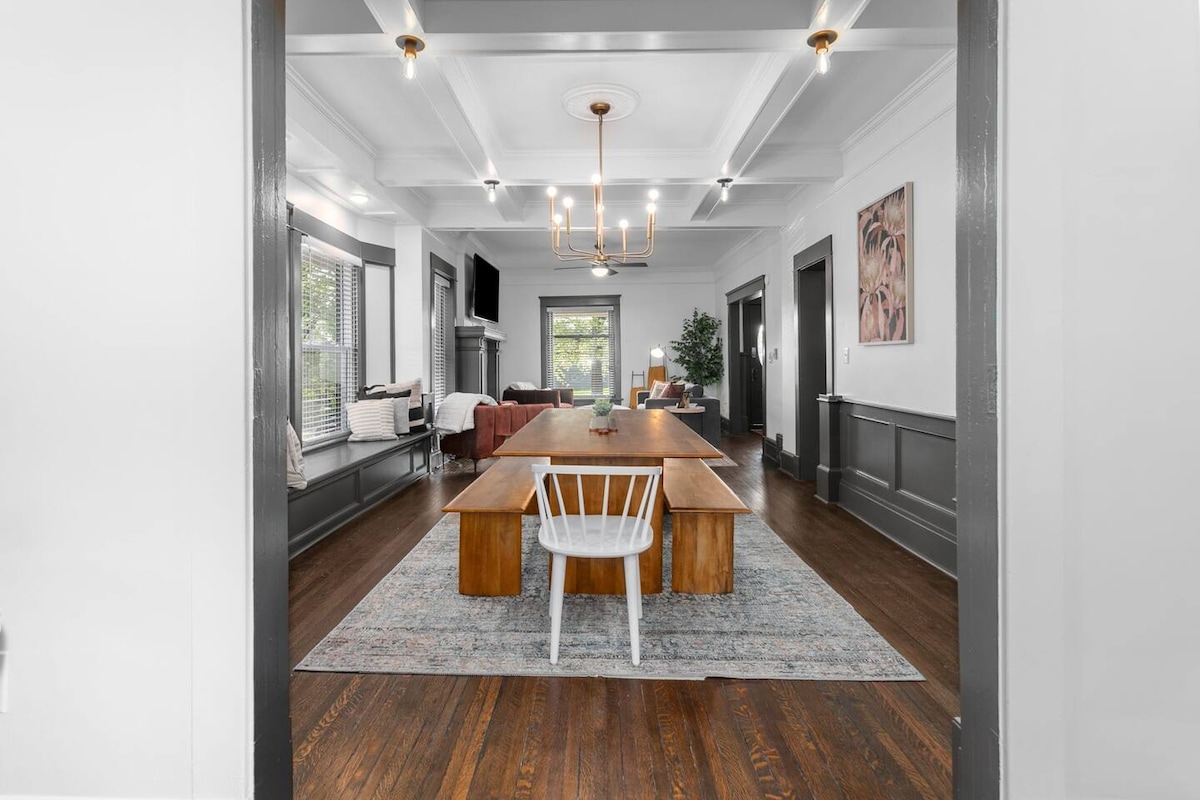 サウス・カンザスシティの中心部に位置するこの100年の歴史を持つ家では、折衷的な装飾と魅力的なヴィンテージ建築が融合しています。 ここでは、屋内外を問わず、みんなで泊まれるスペースを見つけることができます! スポーツ、コンサート、近くの友人や家族との会合のためにお越しの際の拠点となります。 お子様用のおもちゃやゲーム、スマートテレビ、机、無料の地元コーヒーからシェフ仕様のキッチン、簡単な食事の準備ができる屋外グリルまで、必要なものはすべて揃っています。 ここにはリラックスできる、高品質で快適なベッドがあります。