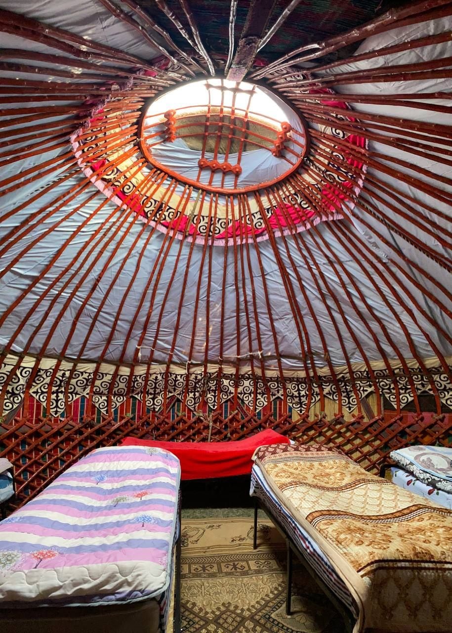 「Ak-Sai Travel」ユルトキャンプでは、最大40のユルトをご用意しております(1ユルトにつき2名様、朝食、昼食、夕食を無料でご提供)。 ユルトキャンプには、ナショナルスタイルで装飾された2つの独立したダイニングユルトがあり、一度に最大60名様まで収容できます。 ダイニングユルトには木製のテーブルとベンチが備わっています。 各リビングユルトは国民的なスタイルで装飾されており、電気と木製ベッド2台が備わっています。各ユルトには木製の床があり、靴を脱いだり、フェルトのスリッパ(各ユルトにも用意されています)を履いたりすることができます。