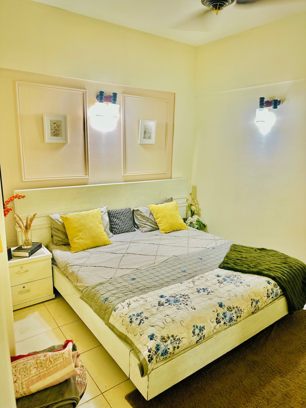 **ハーモニーヘブン:** 当社の1ベッドルームアパートメントには、キングサイズベッド、Wi-Fi、UHDスマートテレビ、エアコンが各部屋にあります。 シャバーズ・コマーシャルの中心部に位置し、キッチンとリビングルームが完備されています。1階の安全とプライバシーは保証されています。 手頃な料金で、フードデリバリー、タクシー、コーヒー、朝食、ランドリーなどをご利用いただけます。近くには、Nandos、Sakura、Costaなどの飲食店やNice Superstoreがあります。 Harmony Havenで快適さと便利さを体験してください。カラチでのんびり過ごしましょう。