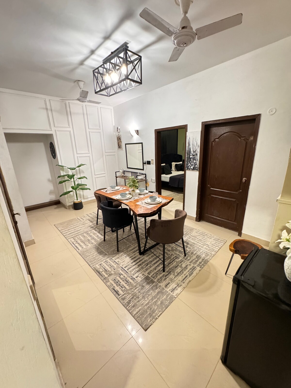 **ハーモニーヘブン:** 当社の1ベッドルームアパートメントには、キングサイズベッド、Wi-Fi、UHDスマートテレビ、エアコンが各部屋にあります。 シャバーズ・コマーシャルの中心部に位置し、キッチンとリビングルームが完備されています。1階の安全とプライバシーは保証されています。 手頃な料金で、フードデリバリー、タクシー、コーヒー、朝食、ランドリーなどをご利用いただけます。近くには、Nandos、Sakura、Costaなどの飲食店やNice Superstoreがあります。 Harmony Havenで快適さと便利さを体験してください。カラチでのんびり過ごしましょう。