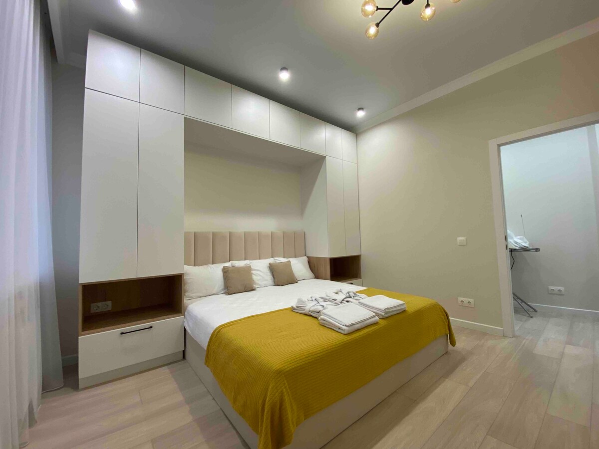 私たちは、あなたの素晴らしい休暇のために、快適で高級なアパートでゲストをお待ちしています! 私たちは、あなたが清潔で快適な環境(清潔なベッド、使い捨てスリッパ、歯ブラシ、紅茶、コーヒー、ヘアドライヤー、アイロン、洗濯機、コンロ)で生活するためにすべてを行います。私たちのアパートは市内中心部にあり、お客様にとって非常に便利です。すべてのアメニティ・設備は徒歩圏内にあります。