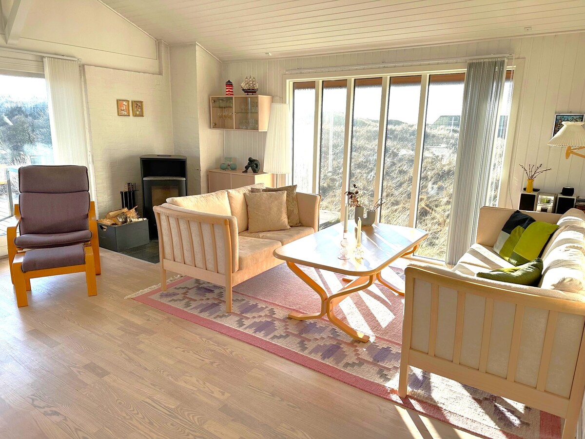 BlokhusとLøkkenの間にある、美しく保護された自然に囲まれた素敵なホリデーホーム。 ゴージャスなビーチから徒歩わずか5分です。 南向きの広いテラスからは、砂丘の素晴らしい景色を含む、美しく保護された自然の景色を眺めることができます。 オープンキッチンとリビングルーム、3ベッドルーム、さらに2台のベッドがある高台。 この家は手入れが行き届いており、伝統的なデンマークのコテージスタイルの家具が備わっています。 電気ラジエーター/薪ストーブで低コストで暖房。高速Wi-Fi。