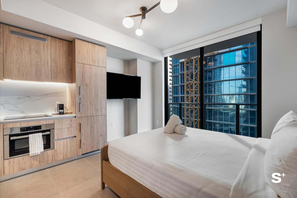 - Enjoy your stay in Miami at our centrally located studio inside a full-service condo-hotel! - You’ll have access to the gym, pool, hot tub, pool bar, and restaurant. - Bayside Marketplace, museums, and the Kaseya Center are just a short walk away, and the free Metromover makes it easy to explore downtown and Brickell. - Inside the studio, you’ll find a full kitchen, a private bathroom, and one comfortable bed, plus 24/7 door staff for added security and peace of mind. - Book your stay now!