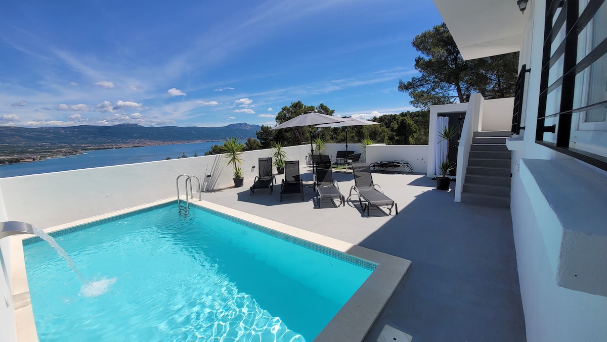 ヴィラ・ベアタ、ファミリーオアシス、プール、眺め、スプリトまで12km