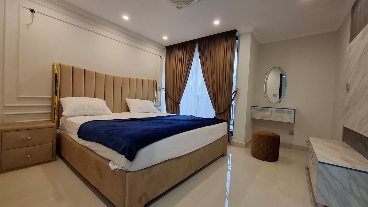 ラホールのバーリアタウンにある、平和でスタイリッシュな隠れ家へようこそ。設備の整ったこのアパートは、出張、ロマンチックな旅行、家族旅行に最適です。エッフェル塔、レストラン、カフェからわずか数分。24時間365日対応のセキュリティ、高速Wi-Fi、Netflix付きスマートテレビ、キングサイズのベッド、キッチン、セルフチェックインをご利用いただけます。快適さ、利便性、プライバシーー自宅から離れても完璧な家です。