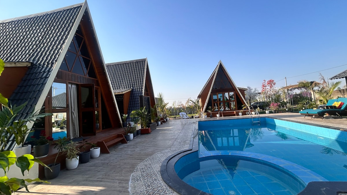 You'll love this unique and romantic escape.A poolside wooden chalet with all modern amenities ,machaan, jacuzzi, library ,projector movies and live matches with many indoor and outdoor games for kids & most importantly its on hilltop close to nature will make your and yours family stay memorable.