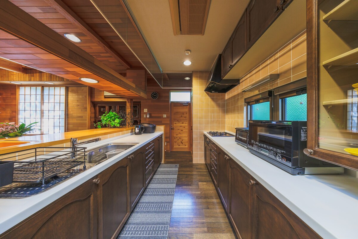 A very quiet environment in the mountains,you can see the beautiful starry sky.Relax on the large wooden terrace.Have a great time with your friends and family.There are air conditioners,home appliances,cooking utensils,and tableware in the room. Located in a quiet villa area. It is not a suitable place for a lively party, such as a group party. å±±ã®äžã®ãšãŠãéããªç°å¢ãçŸããæç©ºãèŠããŸãã倧ããªæšè£œã®ãã©ã¹ã§ãªã©ãã¯ã¹ããŠãã ãããåéãå®¶æãšäžç·ã«æ¥œããæéããéããäžããã宀å ã«ã¯ãšã¢ã³ã³ãå®¶é»è£œåã調çåšå ·ãé£åšãããŸããå®®åèµçåœå®å ¬åå ã®å¥èå°èµçäŒé€æå ã«ãããŸããã°ã«ãŒãã§ã®ããŒãã£ãŒçãã«ãããã«éããã®ã¯äžåããªå Žæã§ãã
