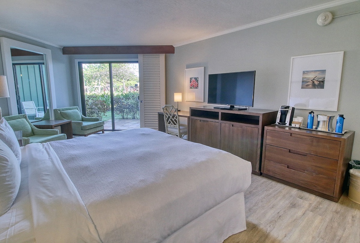 ガーデンラナイ。ビーチフロントリゾート。キングサイズベッド。エアコン