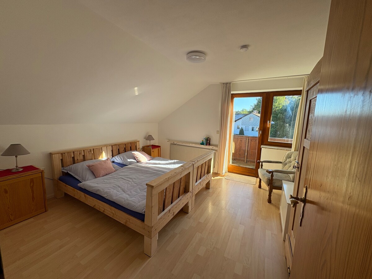 アルゴイの中心部に位置するアパートメントで、専用玄関とドアがあります。ロフトのようにリビング、キッチン、寝室と、大きなバスタブを備えた美しいバスルームがある広い部屋に分かれています。アパートはアルプスに近いアルゴイの真ん中にあります。ハイキングやスキーをする場合でも、車でたいてい30分です。自転車用の大きなガレージ、アパートへの専用アプローチにスキーを保管するための設備。1人あたり1泊につき1.20ユーロの観光税が別途かかります。