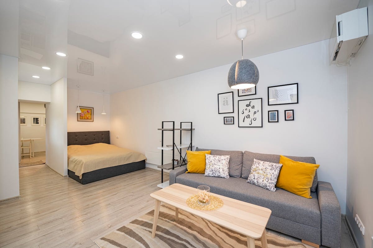 カウナス市内中心部にある家具付きの1ベッドルームアパート。 ショップ、バー、レストラン、博物館まで徒歩数分。バス停と駅まで徒歩15分、アズオリナス公園まで徒歩10分。 アパートは40平方メートルで、最大4名様まで快適にご宿泊いただけます。 寝室には1.6 x 2 mのベッド1台、居間には引き出し式ソファベッドがあります。 キッチンには食事の準備に必要なものがすべて揃っています(冷蔵庫、食器洗い機、コンロ、オーブン、ケトル、電子レンジなど)。 スマートテレビとWi-Fi。