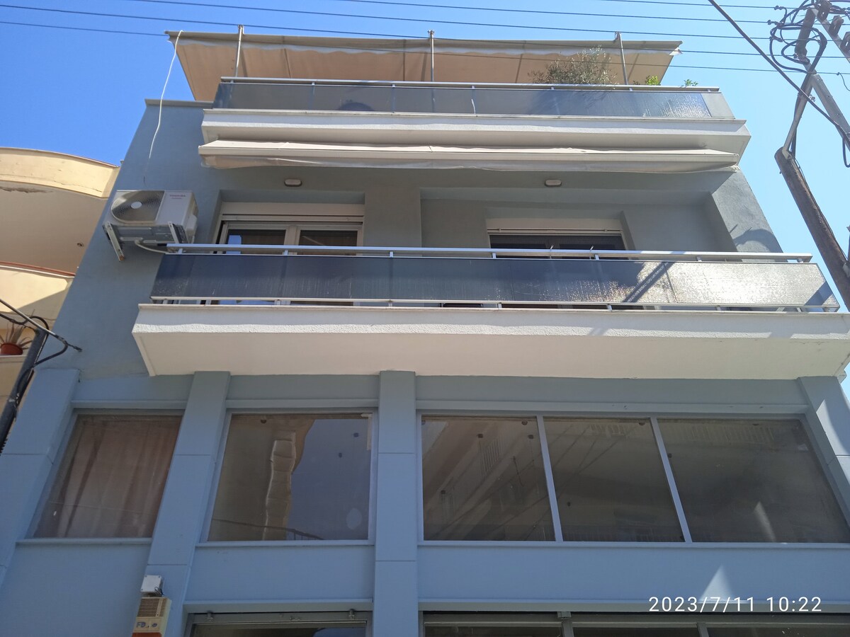 海に面したネア・イラクリツァの歩行者専用道路に面した、エレベーター付きの2階の角部にある55平方メートルのアパート。ネア・イラクリツァ湾(ブルーフラッグ賞)と夏にヨットが係留する絵のように美しい港を望むことができます。泳ぐために車は必要ありません。タオルだけで十分です!スーパーマーケットMasoutisから350m、スーパーマーケットLidlから1km。特徴的な細かい砂の有名なアンモロフィのビーチから5km。カバラの西15km。