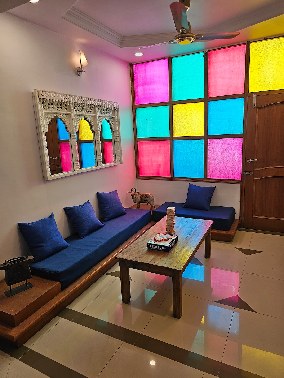 Your dream Jodhpur escape: Heritage, culture, rooftop sunset, the real Blue City at UR doorstep. • Hand-painted murals, jharokhas, stone arches & restored vintage interiors • Kitchen-Microwave, Fridge, Crockery, Utensils, Induction & kettle • Sunlit comfy room, clean baths, fast WiFi • Rooftop chai, yoga, sunsets, BBQ, Stargazing • Open Jeep Heritage Tours arranged • Step out to textiles, temples, chai & street food • Close to Mehrangarh, Clock Tower, heritage walks, yet in peace! Book Fast!