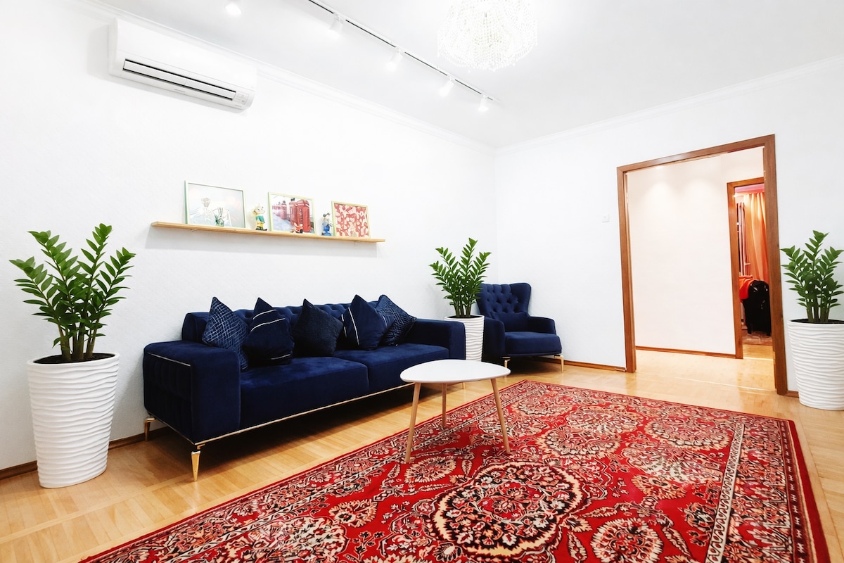 街のど真ん中でスタイリッシュな体験をお楽しみください。 市の中心部にある豪華なリノベーションと高価な家具を備えた3部屋のアパート、明るく広々とした客室。 清潔さ、居心地の良さ、家の暖かさ。 5つ星ホテルのようなこのマンション・アパートに滞在します。 快適な滞在のためのすべてが揃っています。 広々としたホールとリビングルーム、美しいベッドルーム、リビングルームの居心地の良いダイニングエリア、新しい配管を備えたシャワールーム、バスルーム、2つの広々としたバルコニー、すべての家電、ケーブルテレビ、Wi - Fi、エアコン。