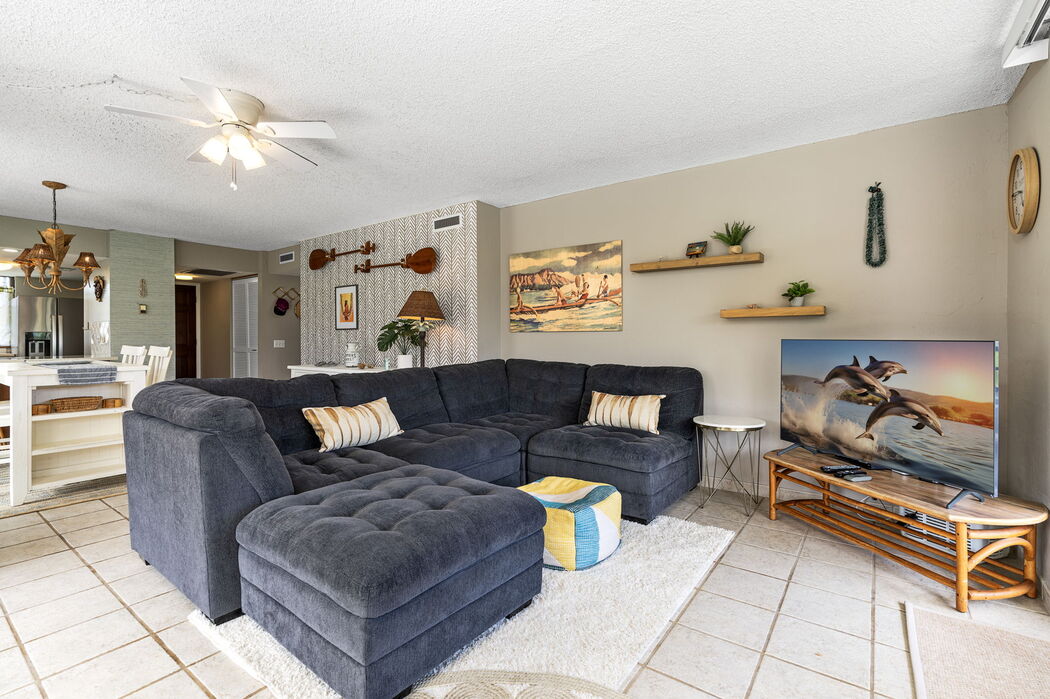 新しい宿泊施設の割引料金! コナ・コースト・リゾート#1 -301は、広々とした3ベッドルーム、2バスルームのコンドミニアムで、素晴らしいオーシャンビューと5つ星リゾートのすべての素晴らしいアメニティを備えています! この明るい最上階のコーナーコンドミニアムからは、素晴らしい夕日と一望できる海の景色をお楽しみいただけます。2,000平方フィートと、ほとんどの物件よりも広い。 最高の景色、高いアーチ型のオープンビーム天井、広いラナイ、最大限の窓、大きなガラス製のスライドドアが、明るくて風通しの良い広々とした空間を作り出しています!