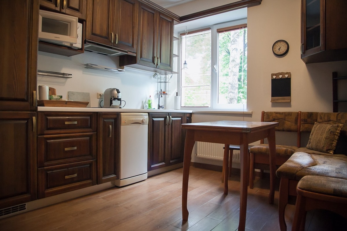 リガのダルジニ地区にある、静かで緑豊かなエリアにある、ご自宅のような宿泊施設へようこそ。この魅力的な2ベッドルームのアパートメントは、ご家族連れやカップル、さらにはペット連れの方にもぴったりです。お子様が近くで安全に遊んでいる間、緑豊かな庭や子ども用遊び場で、家族みんなで充実した時間をお過ごしください。 お子様と一緒に遊んだり、お庭で犬の散歩をしたり、単に特別な時間を一緒に過ごしたりする場合でも、このアパートはリガでの思い出に残る家族旅行に最適な宿泊施設です。
