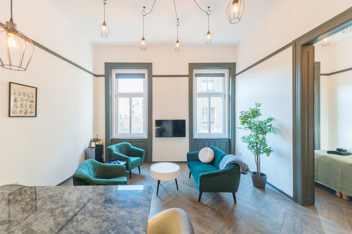 シティパーク&セーチェーニ温泉近くのスタイリッシュな2ベッドルームのマンション・アパート