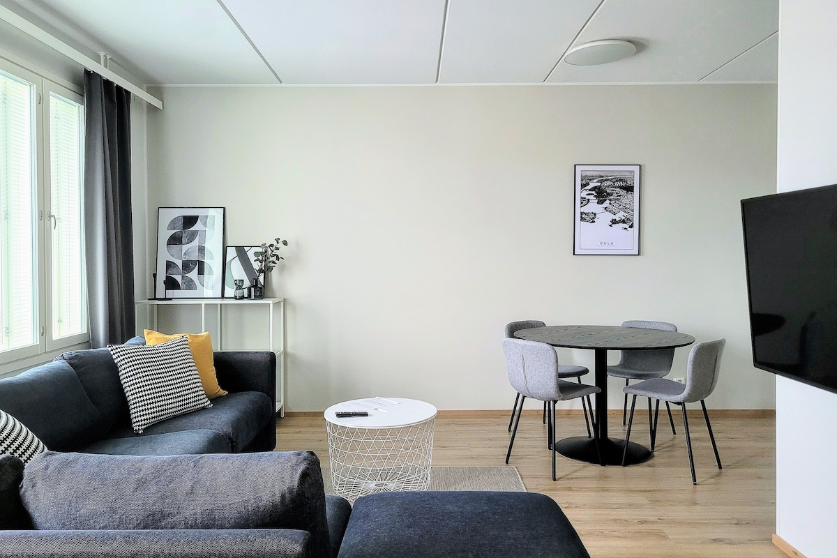 ダウンタウンまで徒歩10分のモダンな47.5平方メートルの1ベッドルームアパート。 公共交通機関へのアクセスがよく、市内のすべてのアメニティ・設備にアクセスできます。 アパートには、設備の整ったキッチン、49インチUHDスマートテレビ、高速Wi-Fi、専用サウナが備わっています! 寝室にはクイーンサイズのベッドがあり、リビングには80cmの追加マットレスがあります。 アパートは3名様のグループに適しています! 暖かいガレージに駐車できます。 電気自動車の充電は20セント/kWhです。