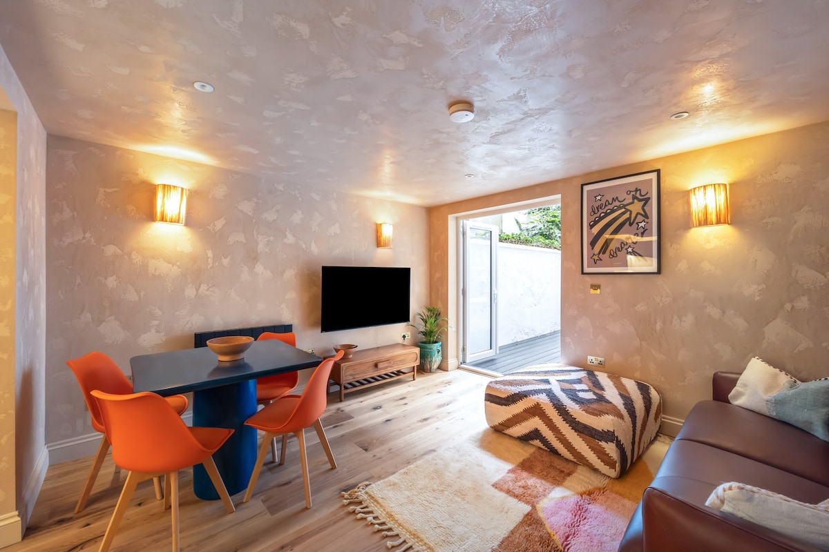 The Elements: Earth Suite –ブライトンの中心部にある、モロッコ風の隠れ家的な静かな袋小路にあります。この豪華なスイートには、ダブルまたはツインに設定可能な2つのベッドルームがあり、4名様がご宿泊いただけます。ヴェネツィアン・プラスターの壁、設備の整ったキッチン、広々としたラウンジ、専用の外部中庭を備え、快適さとスタイルが完璧に融合しています。ビーチ、ノースレイン、活気あるダイニングスポットへのアクセスも簡単です。今すぐ予約して忘れられない滞在を!