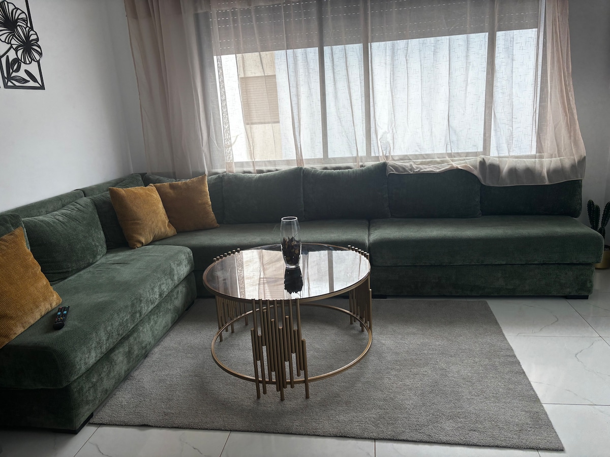 ケニトラの中心部に位置する広々とした美しいアパートで、セブー湖の美しい景色を眺めることができ、すべての施設(レストラン/スーパーマーケット)に近いです。ソファーとダイニングルーム、テレビ、エアコン、Wi-Fiを備えた広いリビングルームで構成されています。2つのベッドルーム、バスルーム、設備の整ったキッチン、そしてコーヒーメーカー付きのコーヒーエリアもございます。これは、静かで安全なエリアにある、良い隣人との平和なアパートです。