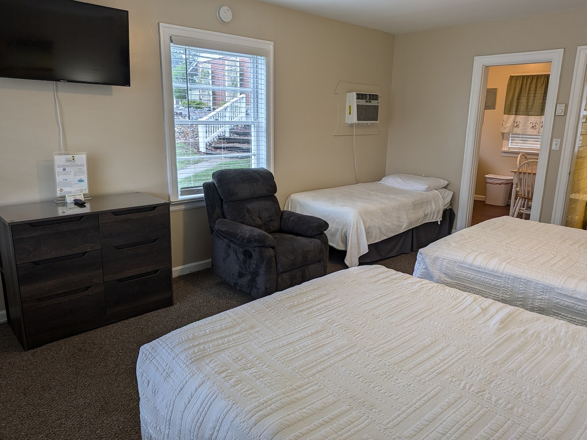 Room 102 in a small 8 room motel. All rooms have 2 queen beds, 2 person dining table, TV with cable, wi-fi, coffee pot, small fridge/freezer, microwave, sink in living area, private bathroom, closet space, COLD A/C. Walking distance to the Cumberland River with gravel boat ramp. About 1 mile from Lake Cumberland boat ramp. Also 1-2 miles from national fish hatchery. Less than 5 miles from Kentucky State Dock. Perfect for fisherman, boaters, all lovers of the lake and river!