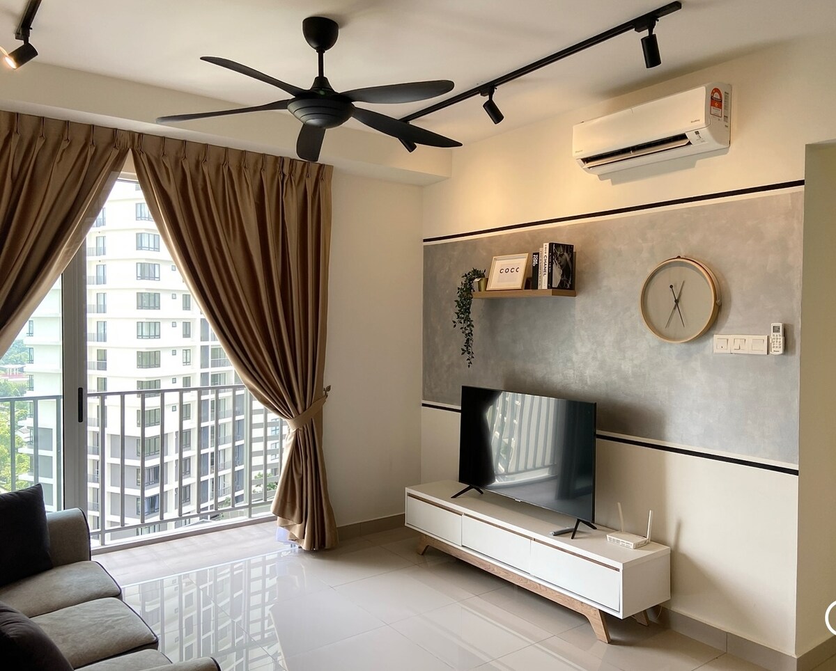 モダンなインダストリアル風の2ベッドルームアパートメント2BRNearbyDesaParkCity華人ホスト+ Neflix/Youtube