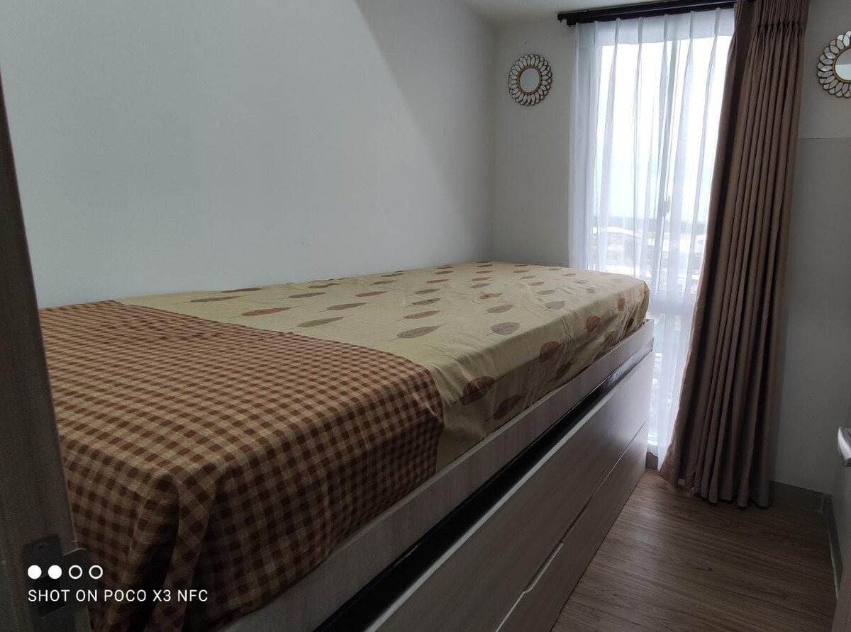Our apartment is decorated minimally for comfort. We accept longer stay (weekly/monthly) at a special rate, inquiry with us! Room details : - Queen bed size 160 x 200 - Smart TV for Netflix chill - Working table - Cooking stove - Cooking hod - Refrigerator - Water heater - If u want to have swimming pool facilities please let us know and we need to adjust the price as there will be extra charge by the apartment management. - NON SMOKING, if you SMOKE, we charge IDR 1.000.000 to clean u