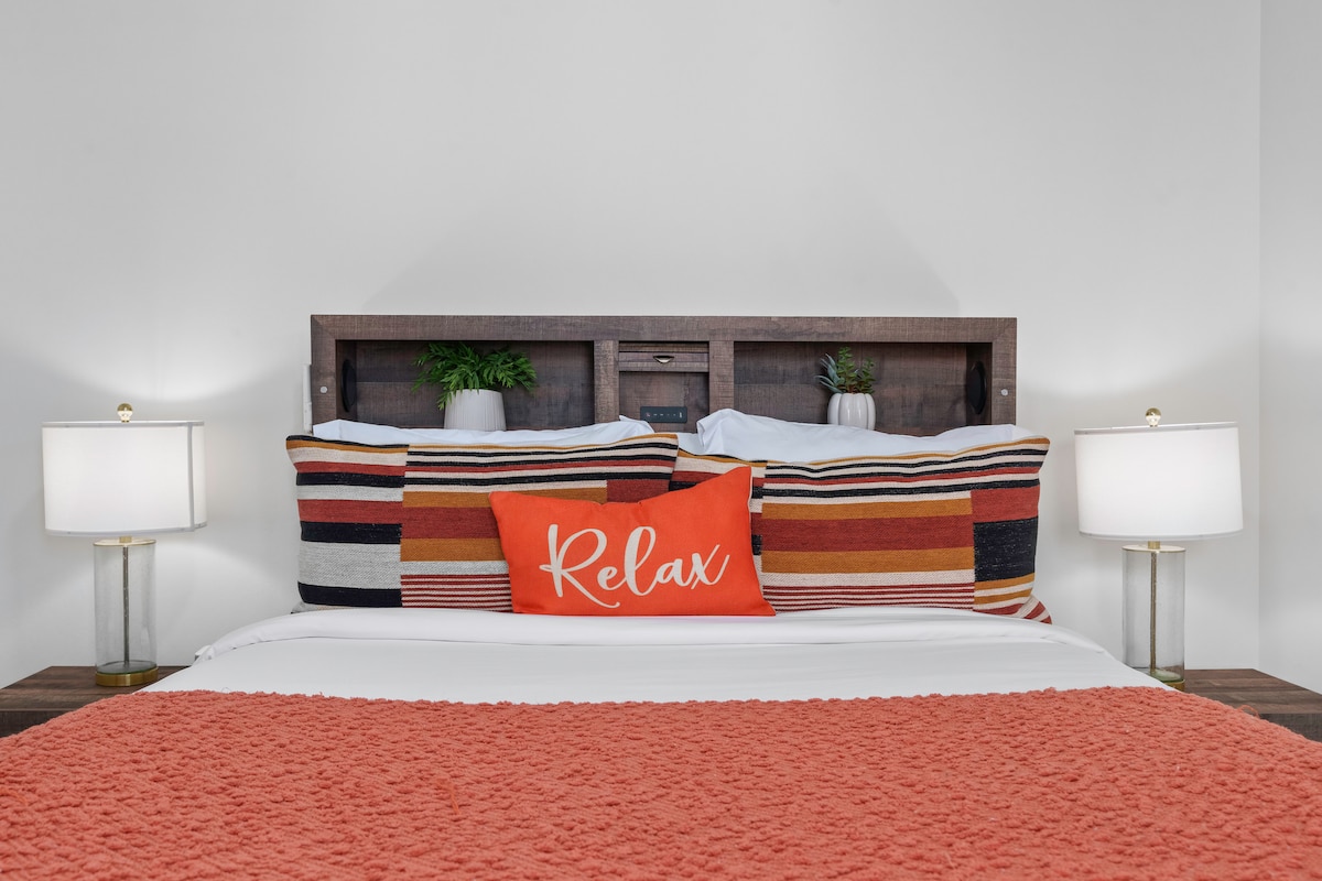 ★Work & Relax ~ Quiet Oasis, ♛Queen Bed, Pool, Pkg