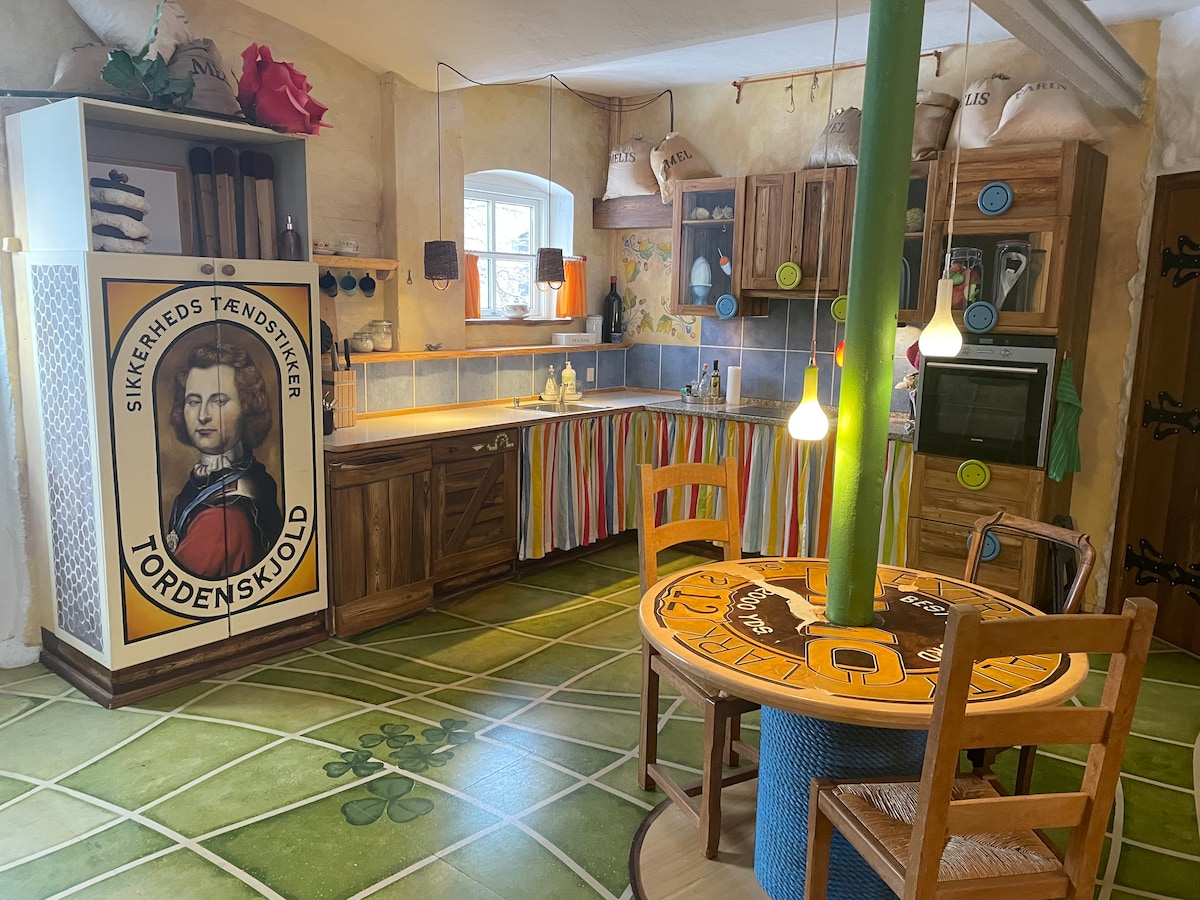 1864年からの大きな歴史的な家で、改装・改装されており、わずか15 ~17分の場所にあります。オーデンセ中心部から。家は手入れが行き届いており、大人4名と子供2名が快適に過ごせる部屋があり、エアマットレスやソファを使用することで、さらに多くの人が過ごせます。 この家は素晴らしいロケーションにあり、 大人2人と子供2人用の自転車が無料で使用でき、エリアを探索できます! こちらはホテルではありません。また、4つ星の宿泊施設を期待するべきではありませんが、素敵な大きなファミリーホームです!