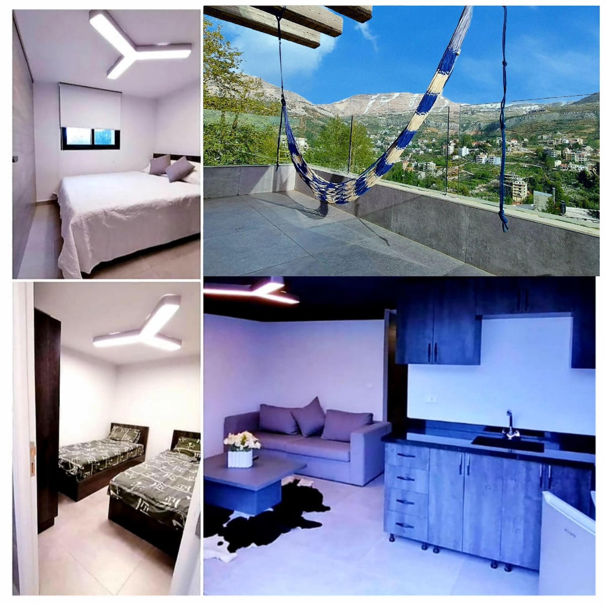 ⭐️Faraya Escape Chalet⭐️ Living room: ✅50” TV ✅Cozy seating area ✅Fireplace/Chimney ✅Mountain view from the balcony Bedroom: ✅1 King Size Bed ✅Closet ✅Warm lighting & cozy ambiance Kitchenette: ✅Fully equipped kitchen ✅Stove ✅Hot Water Kettle ✅Dishes and Silverware ✅Wine Cups