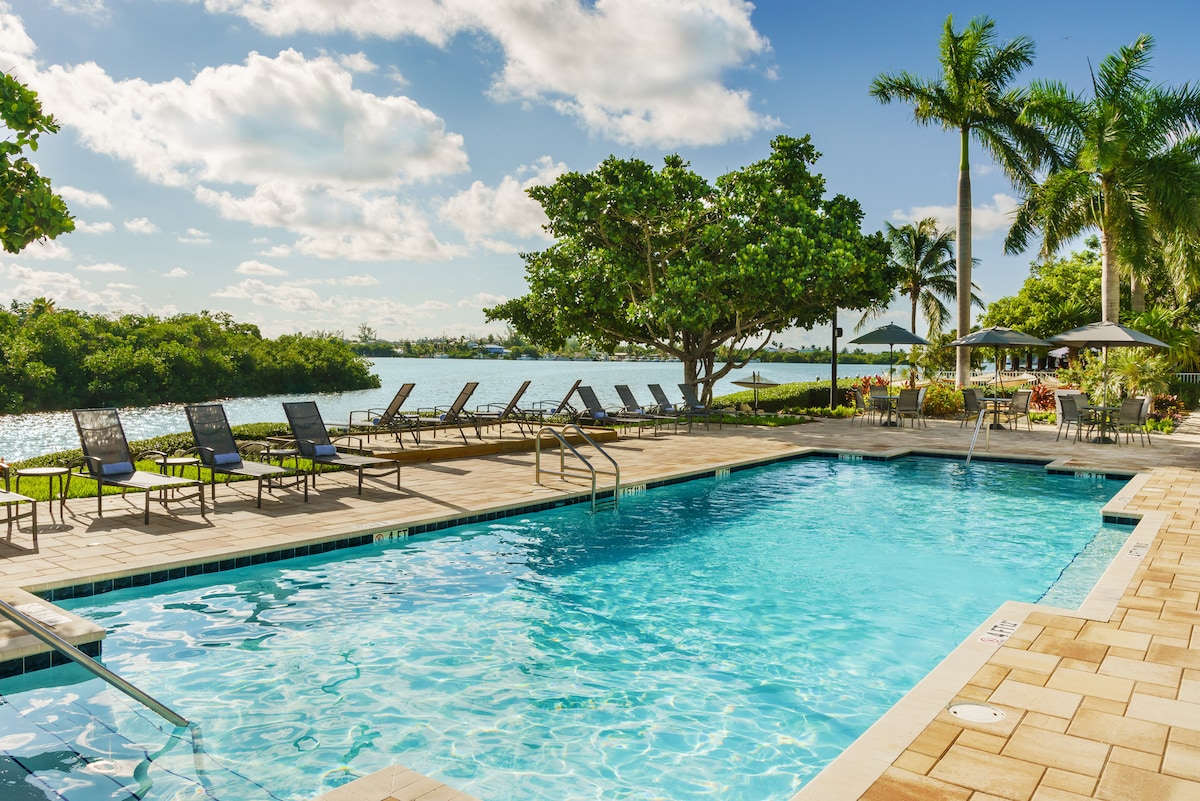 フロリダキーズの中心部にある7マイル橋の隣にあるユニークな宿泊施設。 こちらのお部屋にはキングサイズベッド1台があり、最大2名様までご宿泊いただけます。 夜明けから夕暮れまでプールをお楽しみください。 Sunset GrillとRaw Barの隣に位置しています