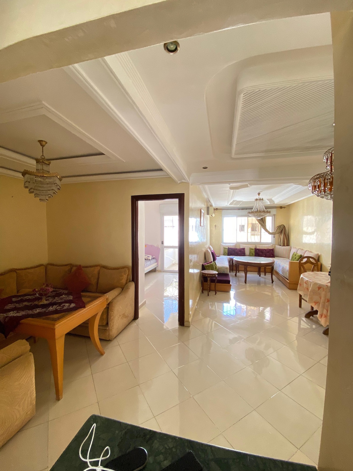 階下に位置する魅力的なアパートで、高齢者にも便利です。庭の景色が見え、静かな場所に理想的に位置しており、レジャー農場、ビーチ、エキゾチックな庭園、マジックパーク、鉄道駅、ムハンマド6世の塔からわずか15分です。マリーナやサレ空港に近い。洗練されたセンス、最高の清潔さ、充実した設備を備えたこの場所は、快適な滞在を提供し、リラックスタイムを楽しむことができます。