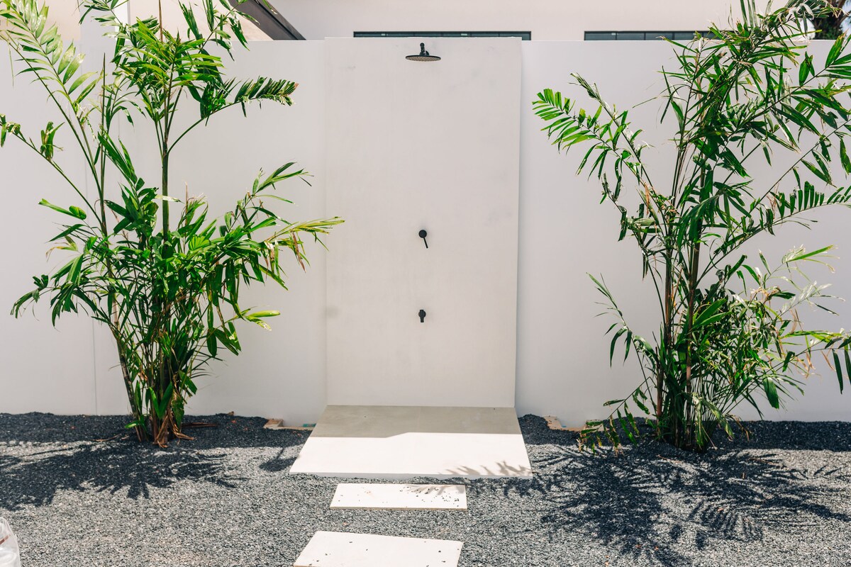 このモダンな住宅は、閑静なビーチタウンの近所にあります。天井が高く、オープンプランのレイアウトで、空間感と風通しの良さを感じることができます。 この家は、メモリーズビーチから車や自転車で数分の場所にあります。現代的なデザインとリラックスできる海辺の生活が融合し、スタイリッシュにくつろぐことができます。
