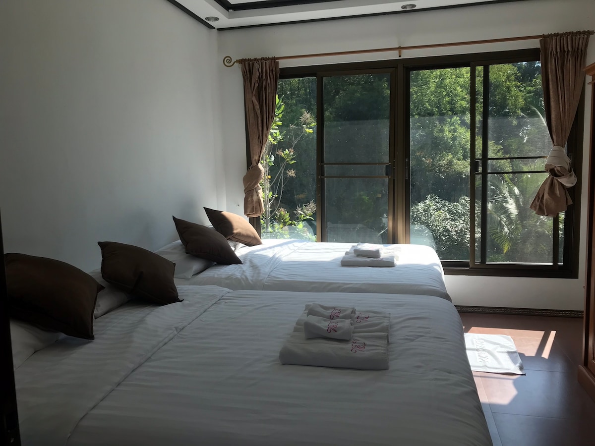 Baansuan Pansookへようこそ! 静かな山々に囲まれた広々とした家で、最大9名様まで宿泊可能です。素晴らしい景色と快適な隠れ家を提供します。3つの寝室、4つのバスルーム、モダンなアメニティを備えた、ご家族やお友達との旅行に最適な宿泊先です。追加のベッドが必要ですか?追加のゲストを受け入れることができます。事前にホストにお知らせください。地元の観光スポットに近いところに滞在しながら、自然の静けさをお楽しみください。