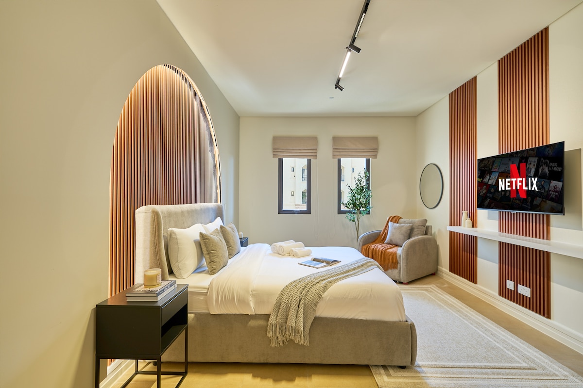 サーディヤット島のソーホースクエアにあるジャパンディスタイルのワンルーム。長期滞在、リモートワーク、または都会での静かな休暇に最適です。高速Wi-Fi、キッチン、プール、ジム、安全な駐車場を完備しています。NYUアブダビ、ルーブル、ソウルビーチまで徒歩圏内です。落ち着きがあり、明るく、快適さと機能性を重視して設計されています。週末でも1か月でも、快適に過ごすために必要なものがすべてそろった静かで手入れの行き届いた空間をお楽しみください。