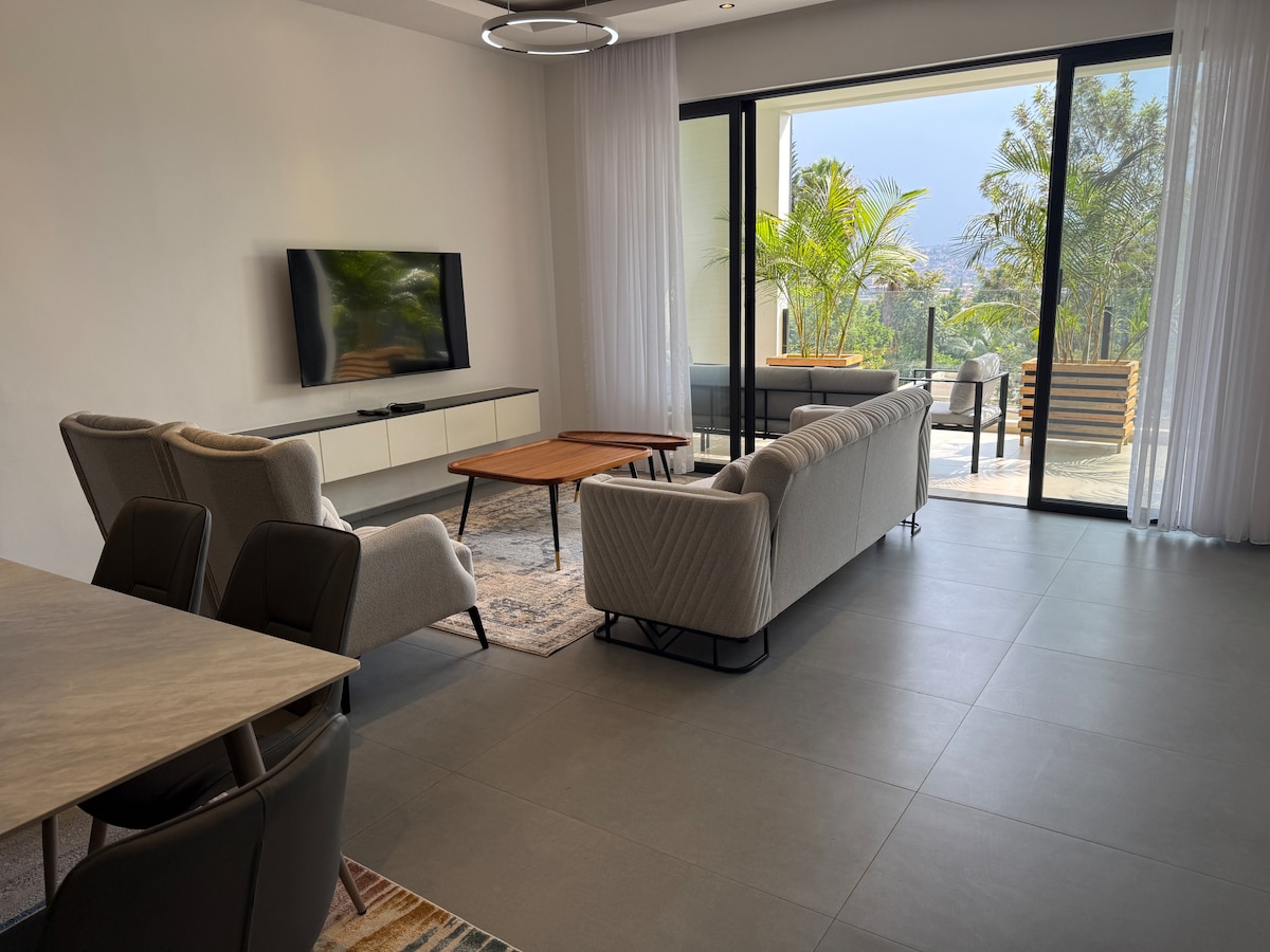 キガリ市の素晴らしい景色を望む、とても落ち着いた高級住宅地にある3ベッドルームのエグゼクティブアパートメントです。 アパートには、新品のモダンな家具と家電が備わっています。 4K画像の58インチスマートテレビ、高品質のサウンドバー、DSTV、高速インターネットをご利用いただけます 宿泊施設は、ショッピングモール、レストラン、バーがあるキガリ市中心部から車で15分です。 キガリのどこにもない超近代的なアパートで豪華な滞在を体験できます。