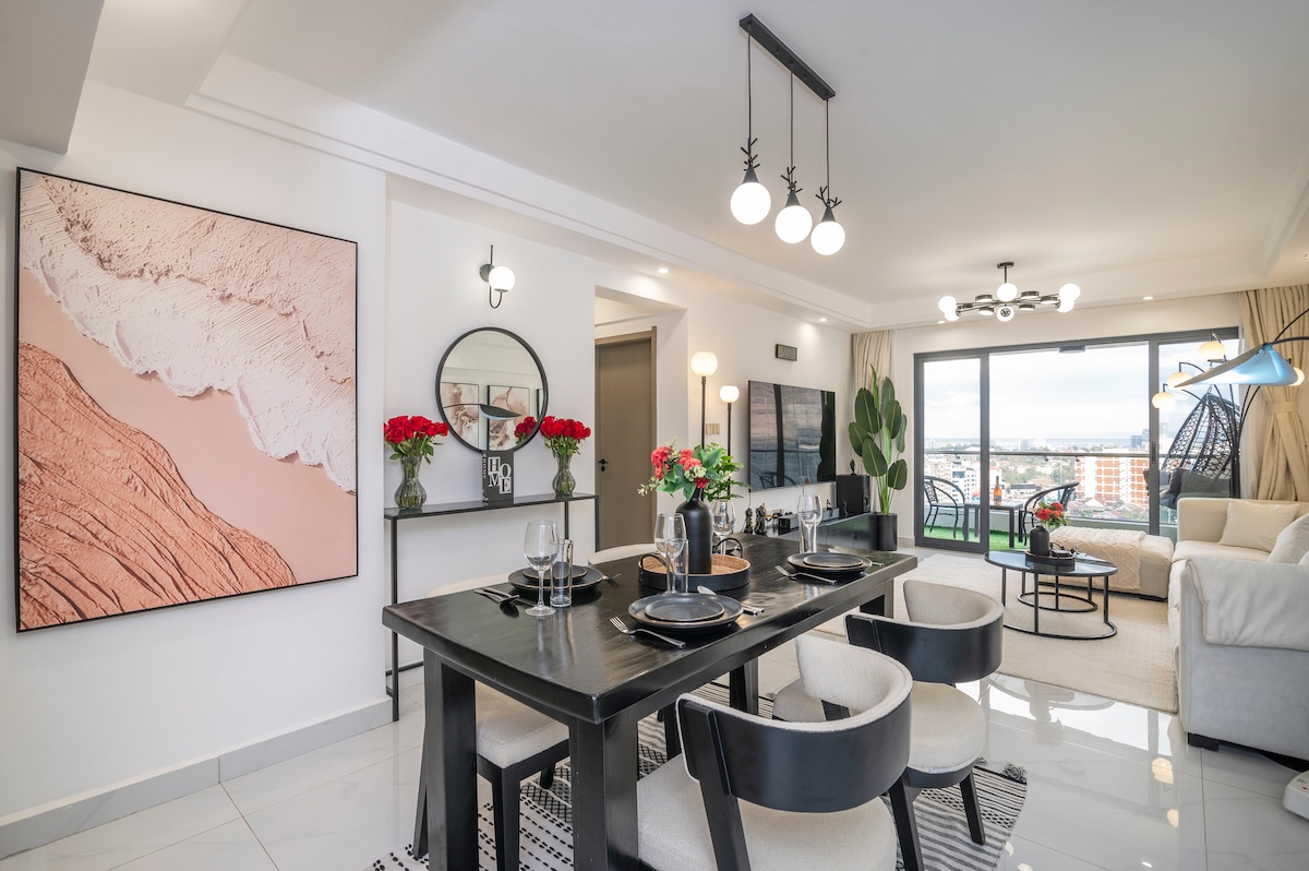 キリマニ中心部にある12階の芸術的な天国、新築のユニークなボヘミアンホームを体験してください。 Yayaショッピングセンター、フードスポット、その他の見どころは徒歩圏内です。 アートワーク、アートブック、自然の植物に囲まれた、厳選された家具と快適なキングサイズベッドで贅沢にお過ごしいただけます。 また、専用バルコニーアクセス、高速Wi-Fi、ワークスペース、設備の整ったキッチン、無料Netflix、ジムなどをお楽しみいただけます。 今すぐ予約しよう!