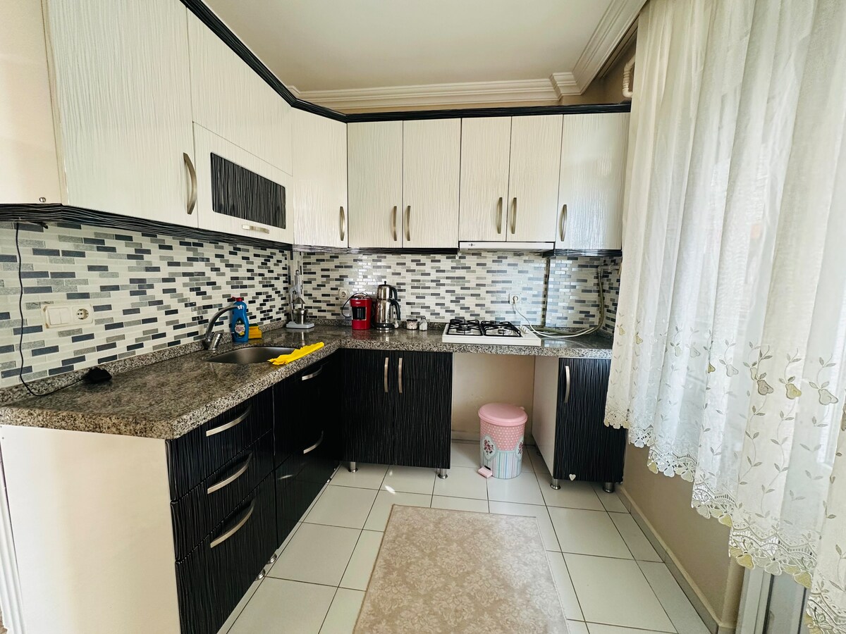 こんにちは、アパートは市内中心部にあります。チャナッカレで最も人気のあるAirbnbの宿泊施設です。 桟橋、海岸、バー街まで徒歩 2 分です。ダブルエックスアパートメントの下の階には、キッチン、トイレ、リビングルーム、エアコンがあります。下の階ではL字型のソファを広げて、ダブルベッドにすることができます。2階には寝室とバスルームがあります。上の階にも追加のエアコンがあります。また、上の階からテラスに出ることもできます。テラスからはチメンリク城とボスポラス海峡を見渡せます。便利で快適な家です。