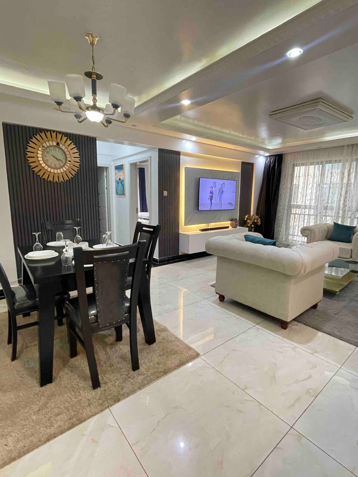 このスタイリッシュで広々とした宿泊先は、キリマニ地区の高級住宅街にあり、バックアップ発電機、バルコニー、ボアホール、監視カメラ、管理駐車場、エレベーター、ジム、子供用遊び場など、多くのアメニティ・設備があります。建物は24時間セキュリティと周囲の壁で安全です。この場所での滞在をぜひお楽しみください。