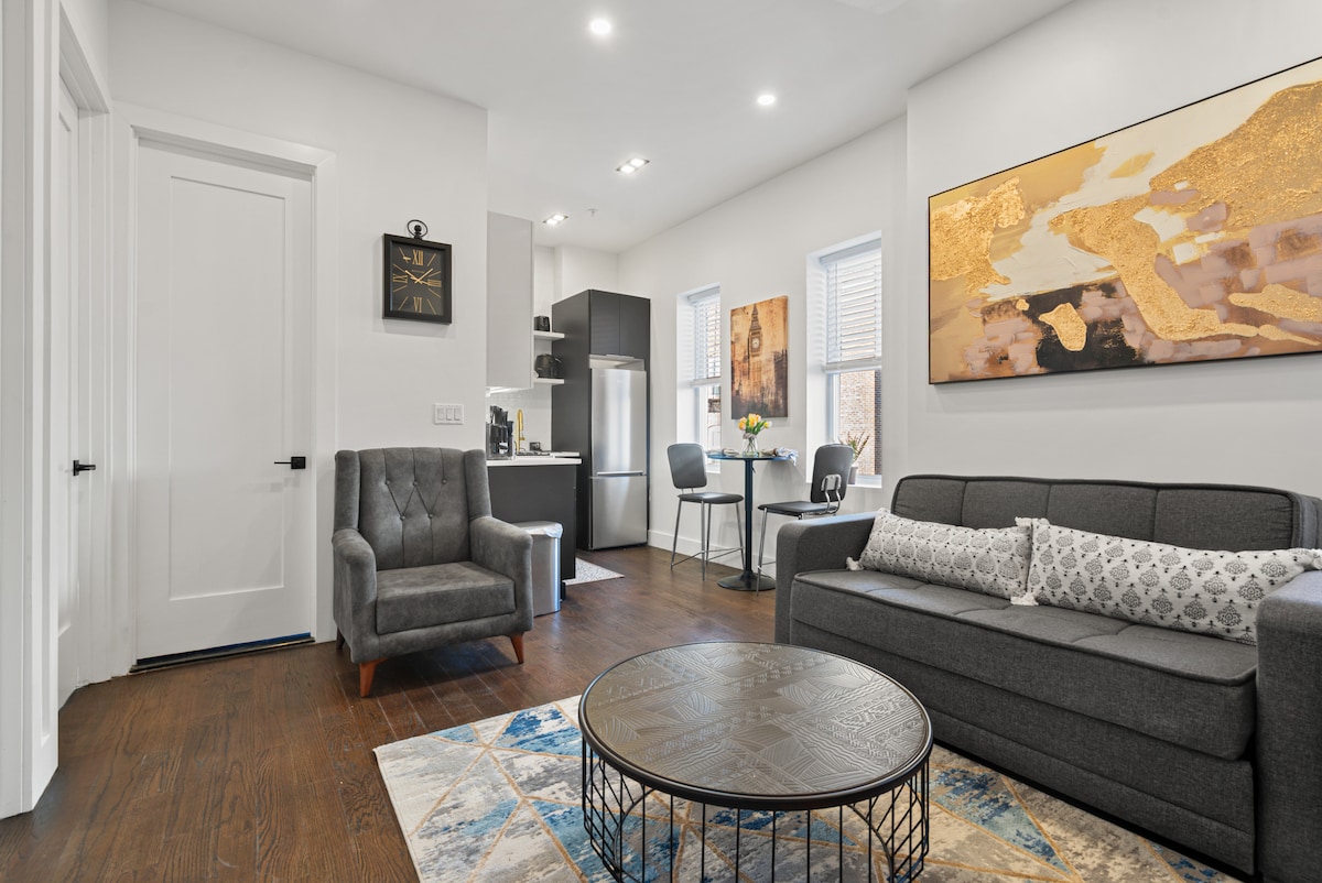 ホーボーケンのダウンタウン中心部でスタイリッシュな体験をお楽しみください。 ビッグアップルに行くための公共交通機関(パス、バス、フェリー)からわずか2ブロックの静かな通りにあります。 この新しく改装されたアパートには、寝室2部屋、広いキッチン/ダイニングエリア、朝ヨガにぴったりのテラスへのアクセスがあるリビングスペースがあります。 レストラン、ショップ、ニューヨーク市と自由の女神への公共交通機関からわずか数歩です。 とても便利で快適なご滞在をお楽しみいただけるこの機会をお見逃しなく。
